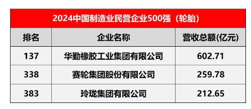 三大輪胎巨頭榮登2024中國(guó)民營(yíng)企業(yè)500強(qiáng)