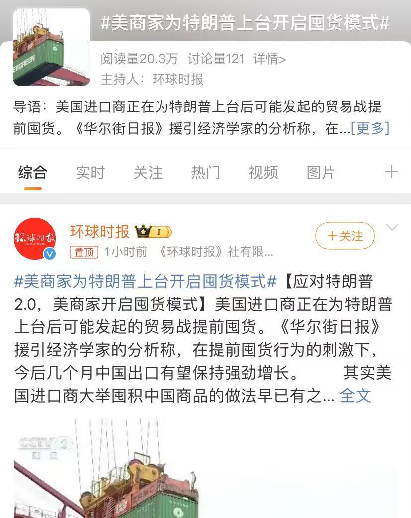 事實(shí)證明,為應(yīng)對特朗普政府的新一輪政策,美國商家已開始積極囤貨?!度A爾街日報(bào)》報(bào)道了近期美國客戶的詢價(jià)量有所增加,并明確指出能感受到美方客戶的擔(dān)憂情緒。這種提前囤貨的行為預(yù)計(jì)將在未來幾個(gè)月內(nèi)持續(xù)推動(dòng)中國出口的強(qiáng)勁增長。