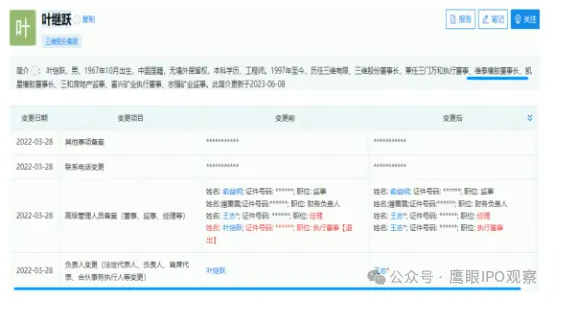工商資料同時顯示,三維控股的董事長葉繼躍,曾是浙江維泰橡膠有限公司(簡稱“維泰橡膠”)的董事長,其直到2022年3月28日才退出維泰橡膠。