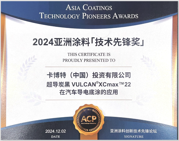 【炭黑產(chǎn)業(yè)網(wǎng)】12月26日消息,廣州近日舉辦了亞洲涂料創(chuàng)新技術(shù)先鋒論壇及2024年度亞洲涂料行業(yè)先鋒獎(jiǎng)?lì)C獎(jiǎng)典禮,卡博特(中國(guó))投資有限公司憑借其創(chuàng)新產(chǎn)品——VULCAN? XCmax? 22超導(dǎo)炭黑,在汽車導(dǎo)電底涂應(yīng)用領(lǐng)域的杰出貢獻(xiàn),榮獲“亞洲涂料技術(shù)先鋒獎(jiǎng)”。這一獎(jiǎng)項(xiàng)不僅凸顯了VULCAN? XCmax? 22在導(dǎo)電性能、分散性及色彩展現(xiàn)方面的卓越優(yōu)勢(shì),也彰顯了卡博特在推動(dòng)涂料行業(yè)技術(shù)創(chuàng)新與可持續(xù)發(fā)展方面的不懈追求。