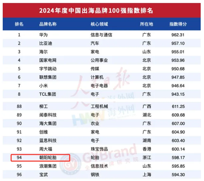 朝陽輪胎榮膺2024中國出海品牌100強(qiáng)!