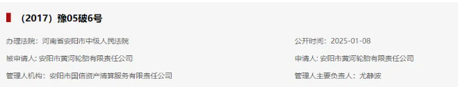 日前,全國企業(yè)破產(chǎn)重整案件信息網(wǎng)公示一則破產(chǎn)信息,為河南河南省安陽市中級(jí)人民法院裁定安陽市黃河輪胎有限責(zé)任公司的破產(chǎn)案件。