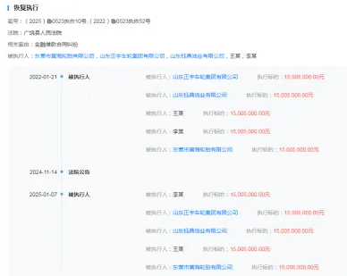 【炭黑產(chǎn)業(yè)網(wǎng)】1月13日消息,廣饒縣人民法院近日在東營市黃海輪胎有限公司(黃海輪胎)和山東正宇車輪集團(tuán)有限公司(正宇車輪)與某銀行的金融借款合同糾紛案件中取得了新進(jìn)展。根據(jù)天眼查APP數(shù)據(jù),案號(hào)為(2025)魯0523執(zhí)恢10號(hào)的案件于2025年1月7日被重新立案,執(zhí)行標(biāo)的額達(dá)到15005000元人民幣。