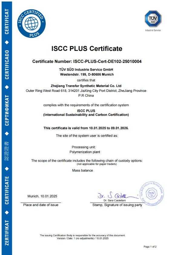 傳化合成榮獲ISCC PLUS認(rèn)證