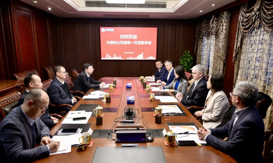 在會(huì)談中,霍博特先生(右方代表團(tuán)中第三位)與錢志剛總裁(左方代表團(tuán)中第三位)展開(kāi)了深入且友好的交流。雙方就全球經(jīng)濟(jì)趨勢(shì)、炭黑行業(yè)的綠色低碳轉(zhuǎn)型與高質(zhì)量發(fā)展路徑、卡博特上海工廠獨(dú)立運(yùn)營(yíng)項(xiàng)目的最新動(dòng)態(tài),以及補(bǔ)強(qiáng)材料的業(yè)務(wù)拓展與研發(fā)合作等多個(gè)議題,進(jìn)行了全面且富有建設(shè)性的探討。