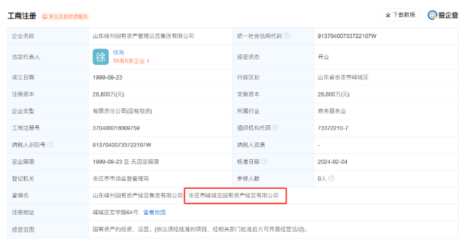 據(jù)悉,該股權(quán)凍結(jié)期限從2025年1月13日持續(xù)至2028年1月12日。嶧城國(guó)資公司的營(yíng)業(yè)執(zhí)照號(hào)碼為370400018009759。