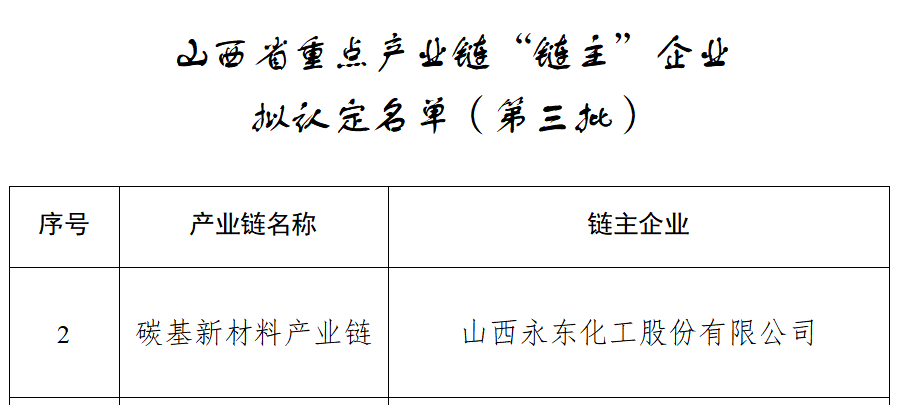 【炭黑產(chǎn)業(yè)網(wǎng)】1月24日消息,山西省工業(yè)和信息化廳近日揭曉了第三批省級重點(diǎn)產(chǎn)業(yè)鏈“鏈主”企業(yè)擬認(rèn)定名單,永東股份憑借在碳基新材料領(lǐng)域的杰出貢獻(xiàn),榮耀登榜,被認(rèn)定為該產(chǎn)業(yè)鏈的“鏈主”企業(yè)。