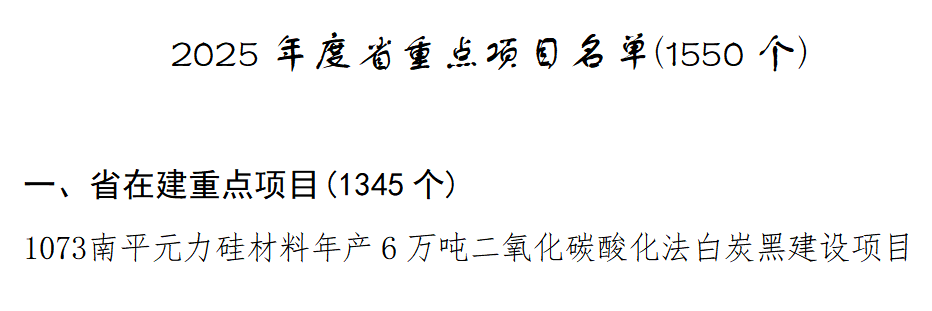6萬噸白炭黑項(xiàng)目,入選福建省重點(diǎn)項(xiàng)目!