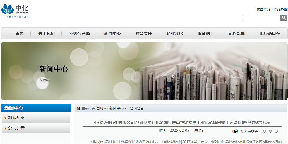 昨日,中化泉州石化有限公司在其官方網(wǎng)站上正式公布了《7萬噸/年石化渣油高性能炭黑工業(yè)示范項(xiàng)目環(huán)保驗(yàn)收?qǐng)?bào)告》的公示信息。公示期為2025年2月5日至2025年3月3日。
