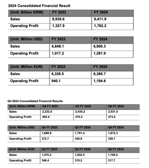 【炭黑產(chǎn)業(yè)網(wǎng)】2月6日消息,韓泰輪胎技術(shù)公司在2024年取得了顯著的業(yè)績(jī)?cè)鲩L(zhǎng),其營(yíng)業(yè)利潤(rùn)同比大幅攀升32.7%,達(dá)到約11.95億歐元。同時(shí),公司的全球綜合銷售額也實(shí)現(xiàn)了5.3%的增長(zhǎng),總額達(dá)到63.81億歐元。這家韓國(guó)輪胎巨頭在2月4日發(fā)布的報(bào)告中指出,盡管全球經(jīng)濟(jì)面臨諸多挑戰(zhàn),但公司憑借高附加值產(chǎn)品的持續(xù)推廣,成功實(shí)現(xiàn)了盈利能力的歷史性突破。