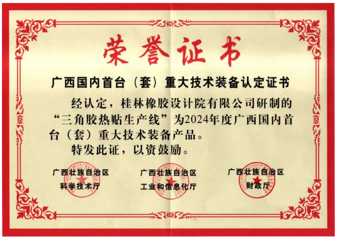 此外,該產(chǎn)品還獲得了多項專利認(rèn)證,包括9件發(fā)明專利(其中1項為西班牙授權(quán)專利)和13件實用新型專利。這些專利為輪胎行業(yè)的綠色、高效、智能制造提供了強有力的技術(shù)支撐,推動了輪胎行業(yè)向更高質(zhì)量的發(fā)展。同時,該產(chǎn)品憑借先進的工藝方法技術(shù)以及高度集成化、自動化、數(shù)字智能化的性能優(yōu)勢,日前榮獲了2024年度廣西國內(nèi)首臺(套)重大技術(shù)裝備認(rèn)定。這一認(rèn)定不僅是對裝備科技公司自主研發(fā)、設(shè)計和制造能力的充分肯定,也是對企業(yè)在高端化、智能化輪胎制造生產(chǎn)線產(chǎn)品方面的高度認(rèn)可。