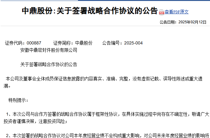 【炭黑產(chǎn)業(yè)網(wǎng)】2月21日消息,安徽中鼎密封件股份有限公司與浙江五洲新春集團(tuán)股份有限公司近日攜手邁出新步伐,雙方基于共同的發(fā)展愿景和戰(zhàn)略需求,正式簽訂了一份戰(zhàn)略合作協(xié)議。此舉旨在深化兩司在人形機(jī)器人部件總成產(chǎn)品領(lǐng)域的合作,共同開(kāi)創(chuàng)互利共贏的新局面。