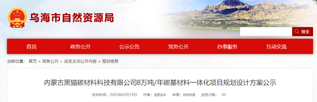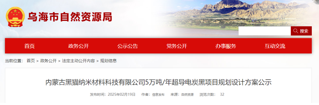 【炭黑產(chǎn)業(yè)網(wǎng)】2月24日消息,近日,烏海市自然資源局公示了兩項重要項目規(guī)劃設計方案,分別是內(nèi)蒙古黑貓納米材料科技有限公司的5萬噸/年超導電炭黑項目和內(nèi)蒙古黑貓?zhí)疾牧峡萍加邢薰镜?萬噸/年碳基材料一體化項目。