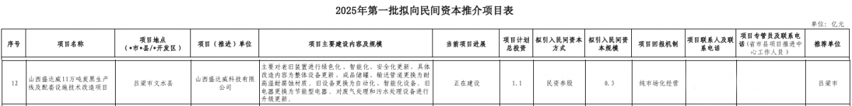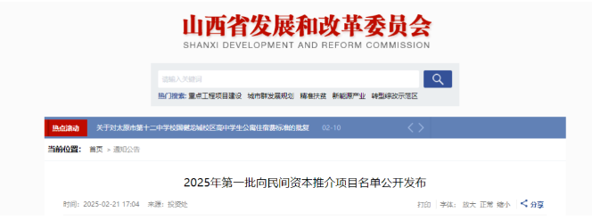 【炭黑產(chǎn)業(yè)網(wǎng)】2月25日消息,山西省發(fā)展和改革委員會(huì)公開發(fā)布2025年第一批向民間資本推介項(xiàng)目名單。