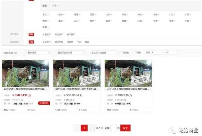 回顧2020年底,山東億諾工程輪胎有限公司的設(shè)備就出現(xiàn)過變賣的情況。變賣標(biāo)的評估價:443.14萬元,起拍價:358.9434萬元,保證金:40萬元,增加幅度:1.7萬元。這是山東億諾工程輪胎有限公司第三次被拍賣/變賣。山東億諾工程輪胎有限公司所有的機器設(shè)備一宗分別在2020年8月13日、2020年9月11日和2020年12月22日結(jié)束三次拍賣/拍賣。