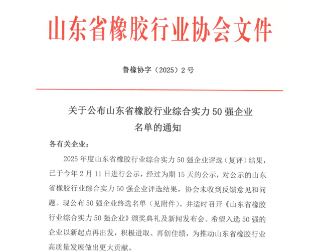 【炭黑產(chǎn)業(yè)網(wǎng)】3月8日消息,山東省橡膠行業(yè)協(xié)會(huì)近日揭曉了2024年度“山東省橡膠行業(yè)綜合實(shí)力50強(qiáng)”企業(yè)名單,山東祥通橡塑憑借其在技術(shù)創(chuàng)新、市場(chǎng)競(jìng)爭(zhēng)力和行業(yè)貢獻(xiàn)方面的杰出表現(xiàn),再度榜上有名,且位列前茅。這一殊榮不僅彰顯了祥通橡塑在橡膠領(lǐng)域的深厚技術(shù)底蘊(yùn)和廣泛品牌影響力,也是其多年來(lái)深耕細(xì)作、持續(xù)創(chuàng)新的有力證明。值得注意的是,這已是祥通橡塑連續(xù)第九年榮獲此項(xiàng)殊榮,進(jìn)一步鞏固了其在山東橡膠行業(yè)的領(lǐng)先地位。