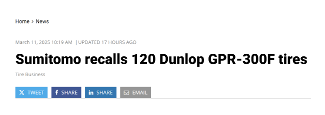 住友橡膠召回120條鄧祿普輪胎,質控問題引關注