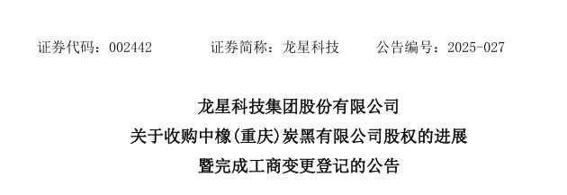 隨著股權變更的順利完成,中橡(重慶)炭黑有限公司已正式成為龍星科技的全資子公司,并更名為重慶龍星科技有限公司。