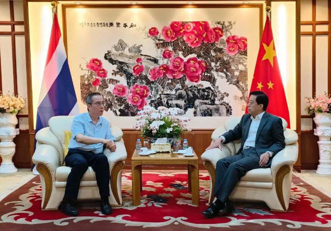 抵達大使館后,張利民高級副總經(jīng)理首先對韓志強大使在繁忙公務(wù)中撥冗會見表示衷心感謝。他代表中策橡膠集團,向大使館長期以來對集團在泰發(fā)展給予的關(guān)心與支持致以誠摯謝意。韓志強大使及經(jīng)商處張瀟瀟參贊對中策橡膠一行的到來表示熱烈歡迎,雙方在友好和諧的氛圍中開啟了此次交流。