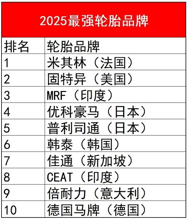 近日,國外媒體發(fā)布了《2025年全球輪胎品牌價值與實力排行榜》在新能源汽車普及加速、綠色技術(shù)迭代的產(chǎn)業(yè)背景下,這份榜單不僅揭示了行業(yè)格局的深刻變化,更展現(xiàn)了中國品牌的突破性成長。