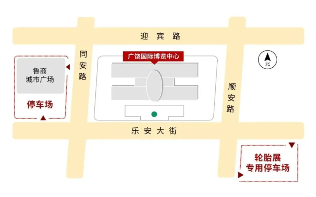 1)樂(lè)安大街和順安路交叉口東南角輪胎展專(zhuān)用停車(chē)場(chǎng)(圖上紅色區(qū)域)