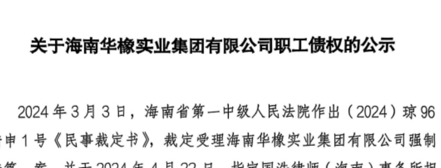 海南華橡實業(yè)集團清算公示,巨額拖欠工資補償金待解