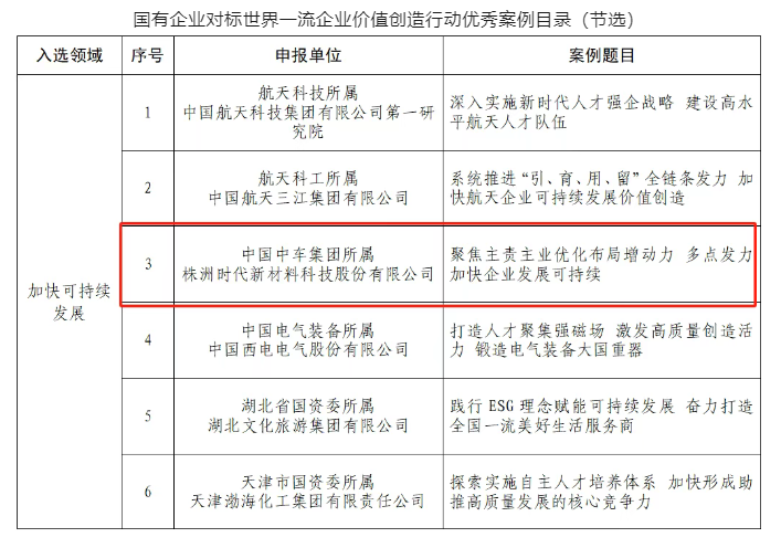 時(shí)代新材案例“殺”進(jìn)國資委對(duì)標(biāo)一流價(jià)值創(chuàng)造優(yōu)秀案例名單