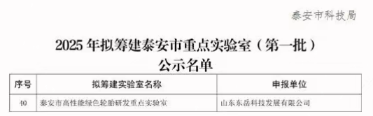 東岳輪胎獲批泰安市重點實驗室