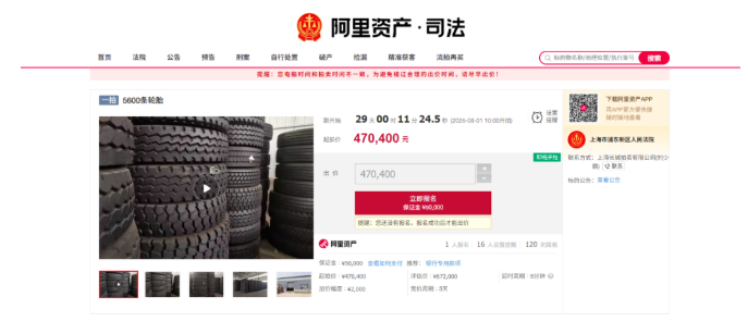 近日,阿里資產(chǎn)拍賣平臺發(fā)布一條司法拍賣,上海市浦東新區(qū)人民法院將于2025年8月1日對5600條輪胎進行網(wǎng)絡司法拍賣活動。