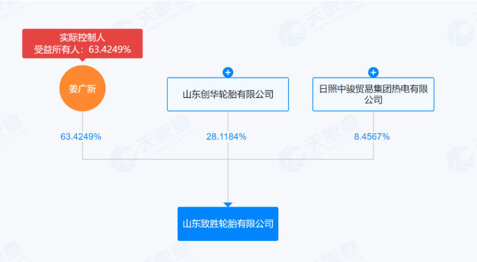 根據(jù)天眼查數(shù)據(jù)顯示,山東致勝輪胎有限公司最大股東為姜廣新,還有兩位股東分別為山東創(chuàng)華輪胎有限公司、日照中駿貿易集團熱電有限公司。