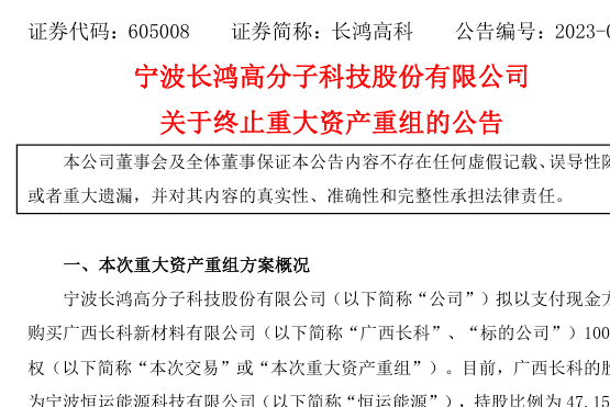早在2023年,長鴻高科就曾計(jì)劃收購廣西長科,但最終因市場(chǎng)環(huán)境變化等因素導(dǎo)致交易條件發(fā)生較大改變,雙方經(jīng)過多輪溝通和談判后,未能就交易方案中的核心交易條件達(dá)成一致意見,長鴻高科遂決定終止籌劃該次重大資產(chǎn)重組事項(xiàng)。