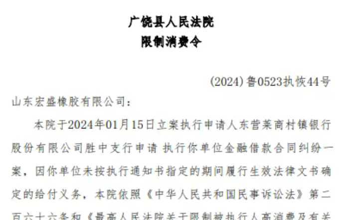 此次法院新下達的限制消費令,明確對宏盛橡膠及張友堯等人的高消費及非生活和工作必需消費行為進行限制,直至其履行完生效法律文書確定的義務(wù)。資料顯示,宏盛橡膠成立于 2003 年,注冊資本 1.08 億元,主要生產(chǎn)全鋼輪胎、半鋼輪胎和工程車輪胎等產(chǎn)品。作為當?shù)赜幸欢ㄒ?guī)模的輪胎企業(yè),其經(jīng)營狀況不僅影響自身發(fā)展,也關(guān)系到為其提供金融支持的銀行機構(gòu)。