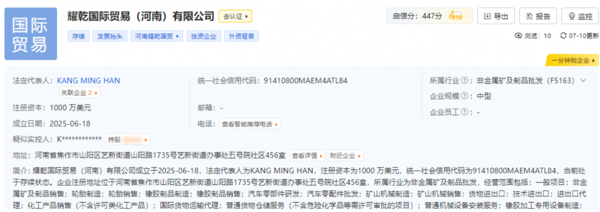 【炭黑產(chǎn)業(yè)網(wǎng)】7月23日消息,馬來(lái)西亞知名跨國(guó)企業(yè)耀乾集團(tuán)在華布局再落重要一子。耀乾國(guó)際貿(mào)易(河南)有限公司日前在焦作市山陽(yáng)區(qū)正式投入運(yùn)營(yíng),標(biāo)志著這家深耕輪胎及礦山機(jī)械領(lǐng)域37年的跨國(guó)企業(yè)在中國(guó)市場(chǎng)的戰(zhàn)略布局進(jìn)入新階段。