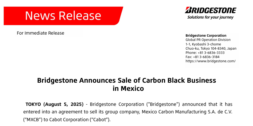 普利司通與卡博特的合作淵源可追溯至 20 世紀 50 年代,長期以來建立了穩(wěn)固的信任關系。作為全球領先的炭黑供應商,卡博特具備廣泛的全球布局和穩(wěn)定的高質(zhì)量供應能力。通過此次業(yè)務轉(zhuǎn)讓,普利司通希望依托卡博特的供應體系、技術(shù)以及在炭黑領域的深厚積累,更好地應對商業(yè)環(huán)境的變化,增強自身的中長期競爭力。與此同時,公司還將繼續(xù)與全球合作伙伴攜手,推進可持續(xù)供應鏈的建設,為社會和客戶創(chuàng)造更多價值。