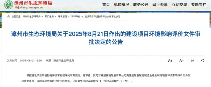 在技術(shù)改造與產(chǎn)能優(yōu)化領(lǐng)域,湖北奧萊斯輪胎股份有限公司(簡稱 “奧萊斯輪胎”)與福建駿馳輪胎分別傳來新消息。奧萊斯輪胎宣布,總投資 1000 萬元的 “全鋼成型自動包布機技改項目” 已完成備案,計劃于 2025 年 8 月正式啟動,將通過淘汰老舊設備、改造現(xiàn)有設備及引入新設備,構(gòu)建自動化閉環(huán)管理體系,提升生產(chǎn)效率與產(chǎn)品質(zhì)量。而福建漳州市于 2025 年 8 月 21 日發(fā)布福建駿馳輪胎 “高性能輪胎智能制造及綜合利用項目” 環(huán)境影響評價文件審批決定公示,該項目早在 4 月已啟動建設,此次公示標志著項目迎來新一輪推進。