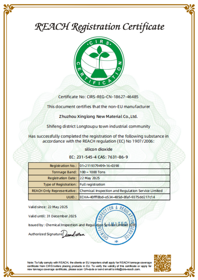 株洲興隆新材,二氧化硅過 REACH 認證!
