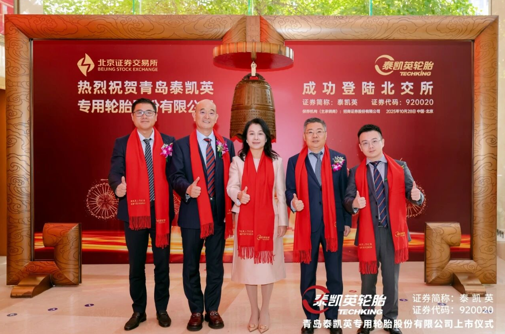 2025年10月28日上午9點30分,北京證券交易所內(nèi)鐘聲敲響,青島泰凱英專用輪胎股份有限公司(股票簡稱:泰凱英,股票代碼:920020)正式掛牌上市,成為資本市場新焦點,這標(biāo)志著這家青島“專精特新”企業(yè)步入全新發(fā)展階段。