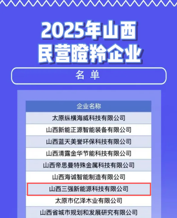 【炭黑產(chǎn)業(yè)網(wǎng)】11月17日消息,11月11日,山西省工商聯(lián)在太原市舉辦以"科技創(chuàng)新賦能民營(yíng)企業(yè)高質(zhì)量發(fā)展"為主題的2025年山西民營(yíng)瞪羚企業(yè)主題活動(dòng),現(xiàn)場(chǎng)正式揭曉本年度山西民營(yíng)瞪羚企業(yè)名單,全省共有67家企業(yè)成功入選,其中山西三強(qiáng)新能源科技有限公司赫然在列。