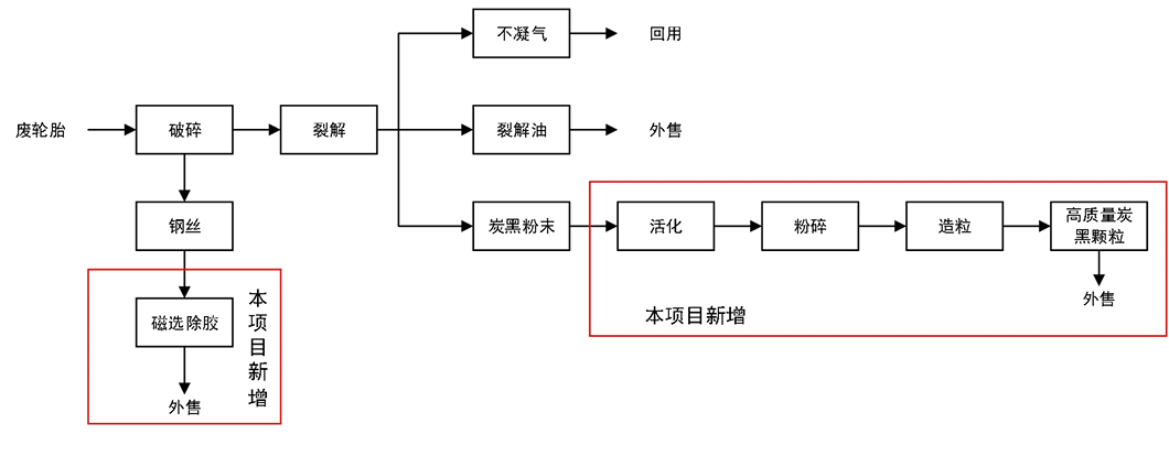 該項(xiàng)目不涉及廢橡膠煉油及現(xiàn)有工程粗炭黑生產(chǎn)工序改造,建設(shè)內(nèi)容為炭黑活化、造粒、包裝及鋼絲除膠。本項(xiàng)目新增炭黑深加工僅針對現(xiàn)有工程炭黑粉末,無新增產(chǎn)能。