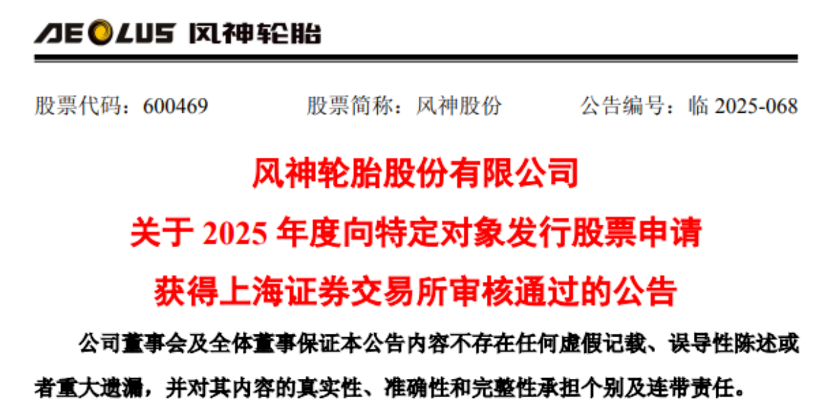 【炭黑產(chǎn)業(yè)網(wǎng)】11月28日消息,近日,風(fēng)神輪胎股份有限公司對(duì)外公布了其向特定對(duì)象發(fā)行股票事項(xiàng)的最新動(dòng)態(tài)。據(jù)公告顯示,該公司提交的發(fā)行股票申請(qǐng)已順利通過上海證券交易所的嚴(yán)格審核。上交所明確指出,風(fēng)神輪胎此次發(fā)行股票的事項(xiàng)完全符合相關(guān)的發(fā)行條件、上市條件以及信息披露要求。接下來,上交所將在收到風(fēng)神輪胎的正式申請(qǐng)文件后,進(jìn)一步提交至中國證監(jiān)會(huì)進(jìn)行注冊(cè)流程。