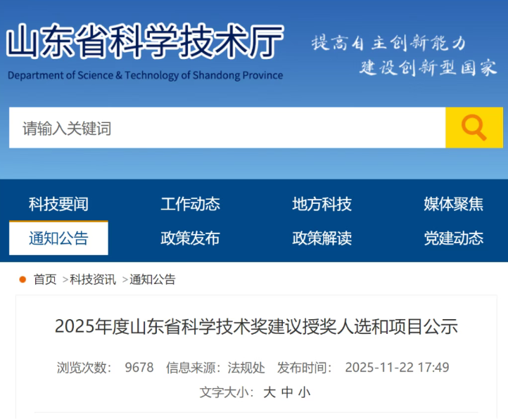 據(jù)炭黑產(chǎn)業(yè)網(wǎng)了解,2025年度山東省科學技術(shù)獎評審委員會給出的建議授獎人選(項目)名單十分豐富。其中科學技術(shù)最高獎有2人擬獲此殊榮,自然科學獎有51項、技術(shù)發(fā)明獎有31項、科學技術(shù)進步獎多達189項,此外還有科學技術(shù)青年獎10人、國際科學技術(shù)合作獎4人擬獲相應(yīng)獎項。