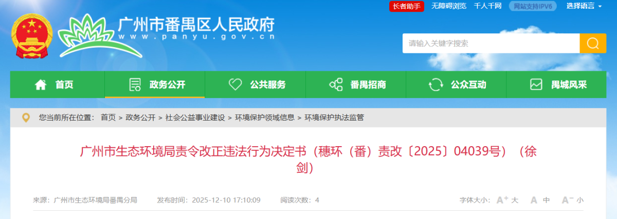 【炭黑產(chǎn)業(yè)網(wǎng)】12月23日消息,12月10日,廣州市生態(tài)環(huán)境局對外公布了一份責(zé)令改正違法行為決定書。該決定書顯示,2025年11月20日,廣州市生態(tài)環(huán)境局番禺分局的執(zhí)法人員對廣州化龍永光橡膠制品有限公司(簡稱“永光橡膠公司”)展開現(xiàn)場檢查,發(fā)現(xiàn)該公司存在一系列問題。