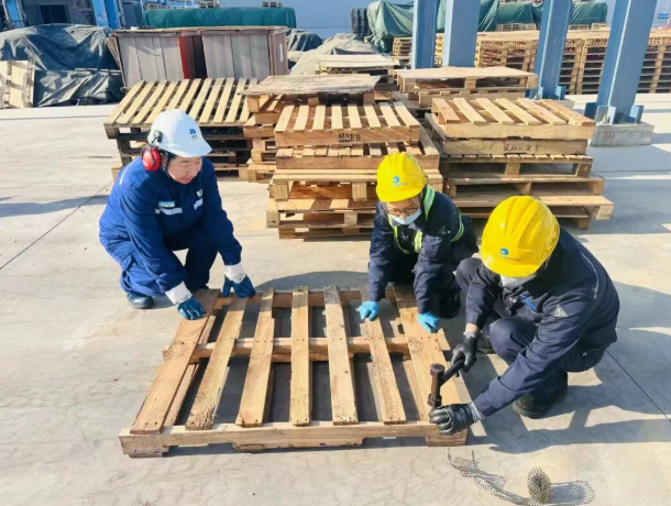 炭黑產(chǎn)品銷售時(shí)配套的木質(zhì)托盤常隨貨發(fā)出,部分客戶使用共享托盤導(dǎo)致大量木質(zhì)托盤遺留在外部倉庫,存在占用空間、處理成本高、易報(bào)廢等問題。團(tuán)隊(duì)發(fā)現(xiàn)遺留托盤多具備回收價(jià)值,部分輕微破損托盤經(jīng)修復(fù)可重新使用,遂主動(dòng)與中化化銷公司協(xié)調(diào)開展托盤回收工作。2025年以來,累計(jì)回收外庫閑置托盤800余個(gè),按每個(gè)采購價(jià)75元計(jì)算,節(jié)約成本約6萬元。同時(shí),團(tuán)隊(duì)利用工余時(shí)間自主修補(bǔ)破損托盤,全年累計(jì)修復(fù)200余個(gè),減少新托盤采購成本約1萬余元。通過“回收+修復(fù)”模式,累計(jì)節(jié)約成本7萬余元,實(shí)現(xiàn)資源合理利用。