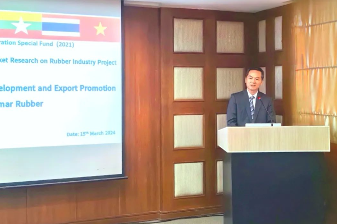 【炭黑產(chǎn)業(yè)網(wǎng)】3月16日消息,近日,一場(chǎng)關(guān)于緬甸橡膠產(chǎn)業(yè)可持續(xù)發(fā)展與出口促進(jìn)的研討會(huì)在仰光盛大開幕。此次研討會(huì)得到了瀾湄合作專項(xiàng)基金的大力支持。開幕式上,緬甸商務(wù)部貿(mào)易促進(jìn)司司長(zhǎng)杜娜姆達(dá)卡波與中國(guó)駐緬甸使館的歐陽(yáng)道冰參贊分別發(fā)表了熱情洋溢的致辭。眾多緬甸橡膠產(chǎn)業(yè)的重量級(jí)人物,包括緬甸商務(wù)部貿(mào)易司司長(zhǎng)吳敏都亞、緬甸經(jīng)濟(jì)和社會(huì)發(fā)展中心總干事吳佐烏等也出席了此次盛會(huì)。