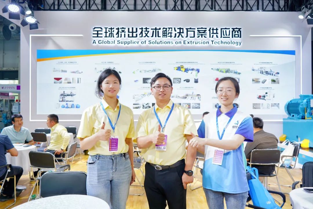 金緯機(jī)械(海寧)有限公司,此次展出的是平行雙螺桿擠出機(jī),李總表示客戶專業(yè)精度每年都在提升,希望