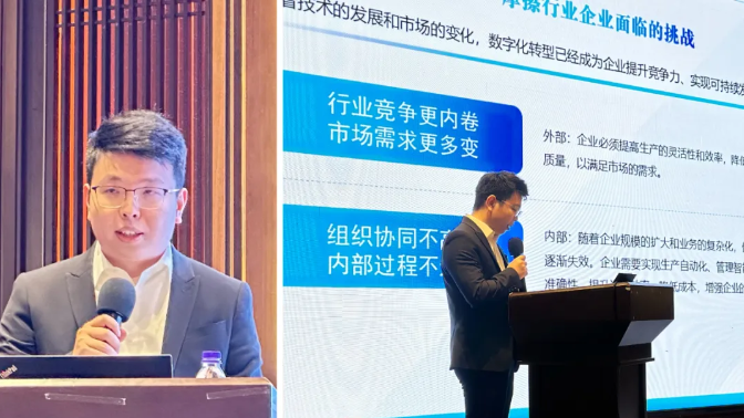 大會特邀杭州易孵科技有限公司聯(lián)合創(chuàng)始人夏楓做了《數(shù)智升級——摩擦材料行業(yè)數(shù)字化改造的創(chuàng)新路徑》專題報告,他提出了摩擦行業(yè)企業(yè)面臨的挑戰(zhàn):隨著技術(shù)的發(fā)展和市場的變化,數(shù)字化轉(zhuǎn)型已經(jīng)成為企業(yè)提升競爭力、實現(xiàn)可持續(xù)發(fā)展的必然選擇。夏楓從數(shù)字化轉(zhuǎn)型的必要性及其挑戰(zhàn)入手,闡述了數(shù)字化轉(zhuǎn)型的效益、條件、創(chuàng)新路徑,并針對摩擦行業(yè)提出數(shù)字化轉(zhuǎn)型的路徑:生產(chǎn)計劃管控數(shù)字化、生產(chǎn)過程管理數(shù)字化、業(yè)務財務協(xié)同數(shù)字化。最后夏楓對杭州易孵為杭州優(yōu)納摩擦材料有限公司做的數(shù)字化工廠案例進行了分享。數(shù)字化轉(zhuǎn)型是大勢所趨,夏總的報告為摩擦材料企業(yè)的數(shù)字化建設提供了系統(tǒng)的思路和方向。