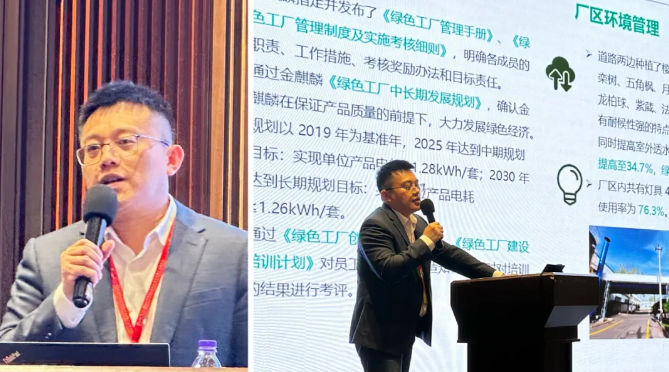 山東金麒麟股份有限公司副總裁甄明暉做了《綠色制造標桿企業(yè)經(jīng)驗分享》。山東金麒麟股份有限公司在2020年獲得了工信部第五批綠色工廠認定,甄總介紹了國內(nèi)外低碳發(fā)展情況,分享了金麒麟公司綠色制造體系建設經(jīng)驗和做法,包括綠色工廠申報的流程以及綠色工廠實踐的基本要求,并介紹了金麒麟綠色工廠未來的規(guī)劃。隨著綠色低碳發(fā)展戰(zhàn)略的逐步夯實,雙碳管理將成為構(gòu)成企業(yè)經(jīng)營管理的一個重要支撐點,金麒麟的綠色建設制造體系建設做法與經(jīng)驗對于行業(yè)內(nèi)企業(yè)的綠色發(fā)展來說具有一定的啟發(fā)和借鑒意義,樹立了標桿。