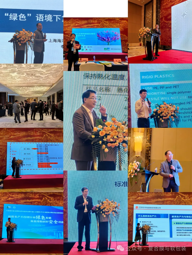 高峰論壇以“新質(zhì)生產(chǎn)力引領(lǐng)行業(yè)綠色發(fā)展、食品接觸材料安全合規(guī)”為主題,來自國內(nèi)權(quán)威專家、學(xué)者及相關(guān)企業(yè)代表就《強(qiáng)化責(zé)任,護(hù)航產(chǎn)業(yè)-復(fù)合軟包裝中芳香族伯胺的溯源探究》、《芳香族伯胺標(biāo)準(zhǔn)解讀及檢測方案》、《綠色”語境下復(fù)合包裝膜發(fā)展的一些探索與思考》、《單一材質(zhì)軟包裝促進(jìn)包裝可持續(xù)化發(fā)展》、《包裝與環(huán)境領(lǐng)域最新政策動(dòng)態(tài)及應(yīng)對(duì)措施》、《DIC環(huán)保和食品安全的油墨新技術(shù)》、《博斯特oneBarrier解決方案最新進(jìn)展》、《W&H的最新擠出技術(shù)以及具有可持續(xù)優(yōu)勢(shì)的軟包裝解決方案》、《多層復(fù)合軟包裝的碳計(jì)算》、《綠色包裝評(píng)價(jià)要求及技術(shù)分享》、《一種環(huán)保、健康、安全的復(fù)合方式》、《復(fù)合膜材料阻隔性能檢測及包裝安全最新解決方案》、《復(fù)合膜袋產(chǎn)品抽樣與檢測方法》、《復(fù)合膜與軟包裝功能性母粒的最新發(fā)展及高效清機(jī)解決方案》、《創(chuàng)新引領(lǐng)軟包裝行業(yè)的新質(zhì)生產(chǎn)力》、《康和綠色膠粘劑可持續(xù)發(fā)展方案》16個(gè)主題進(jìn)行了演講。論壇共計(jì)100多名代表參加,自始自終座無虛席,共同分享和探討著復(fù)合膜軟包裝綠色發(fā)展和安全合規(guī)。