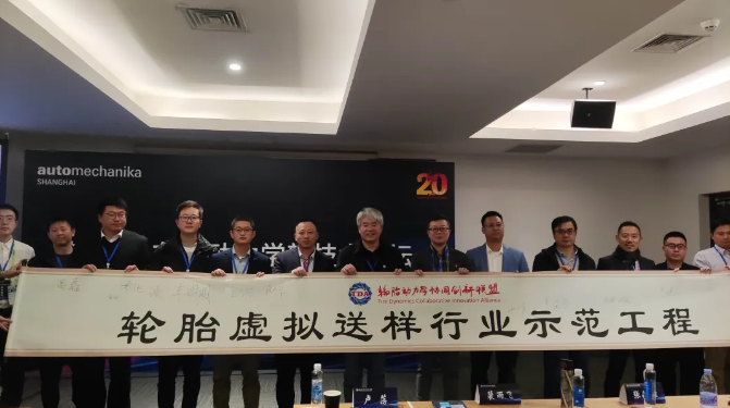 隨后由中國(guó)橡膠協(xié)會(huì)副秘書長(zhǎng)裴雨飛主任與盧蕩教授共同開(kāi)啟輪胎虛擬送樣行業(yè)示范工程,各大參研企業(yè)代表上臺(tái),在啟動(dòng)卷軸上簽名留念,共同見(jiàn)證這一非凡時(shí)刻,并預(yù)祝項(xiàng)目圓滿成功!