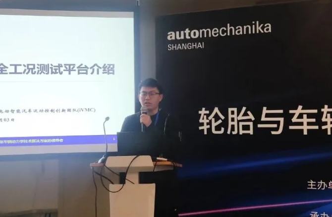 吉林大學(xué)袁浩博士則為在場(chǎng)嘉賓作了《室內(nèi)外輪胎多場(chǎng)景全工況測(cè)試平臺(tái)》的主題分享。
